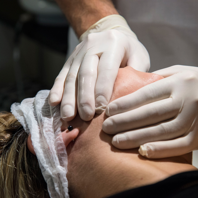 La tecnica di riposizionamento muscolare non è invasiva ed ha lo specifico scopo, attraverso alcune manovre che non determinano nessuna irritazione o edemi nei tessuti, di stimolare in profondità l'azione del nervo trigemino e con il sollevamento progressivo della pliche cutanea e la sollecitazione della muscolatura , esercitare uno stimolo profondo del tessuto connettivo e la totale scomparsa delle aderenze dei muscoli facciali.